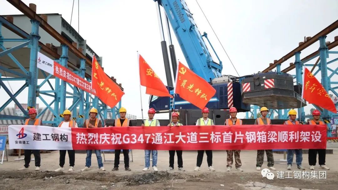 喜迎祖國74華誕之際,安徽建工智能鋼構(gòu)制造集團(tuán)有限公司以實(shí)際行動(dòng)向祖國獻(xiàn)禮,9月26日上午9:16,建工鋼構(gòu)公司G347通江大道項(xiàng)目鋼箱梁首吊順利完成。