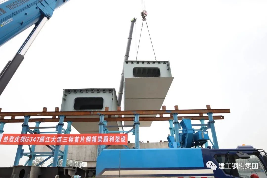 此次鋼箱梁架設(shè),鋼構(gòu)公司做了充足的準(zhǔn)備,對橋梁鋼箱梁結(jié)構(gòu)、現(xiàn)場實(shí)際地形等進(jìn)行了詳細(xì)的分析調(diào)研,并邀請多位專家對吊裝方案把關(guān)評審,不斷優(yōu)化完善吊裝專項(xiàng)施工方案和安全管理方案,實(shí)施多方聯(lián)動(dòng)機(jī)制。在正式吊裝作業(yè)前,對參與施工的作業(yè)人員進(jìn)行細(xì)致的技術(shù)交底,理清每一個(gè)操作步驟,對各個(gè)環(huán)節(jié)實(shí)施精準(zhǔn)把控。在現(xiàn)場指揮人員和作業(yè)人員的密切配合下,該鋼箱梁順利落位完成吊裝,標(biāo)志著G347項(xiàng)目正式開始主橋鋼箱梁施工,為G347通江大道建成通車打下了堅(jiān)實(shí)基礎(chǔ)。